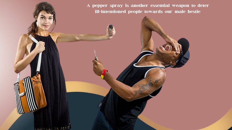 A pepper spray is another essential weapon to deter ill-intentioned people towards our male bestie. We always check with our state laws on weapon use in public.