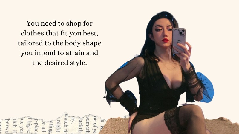 You need to shop for clothes that fit you best, tailored to the body shape you intend to attain and the desired style.
