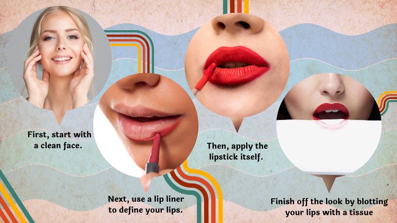 First, start with a clean face. Moisturize your lips, and then apply a lip primer to help the lipstick go on smoothly.
