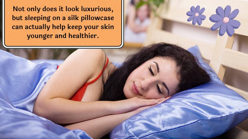 Not only does it look luxurious, but sleeping on a silk pillowcase can actually help keep your skin younger and healthier. Silk is a natural protein containing 18 amino acids, which are the building blocks of collagen.