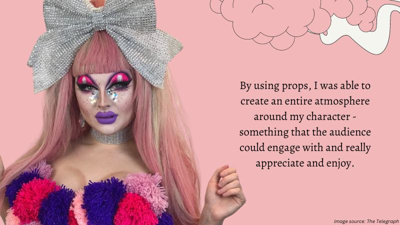 By using props, I was able to create an entire atmosphere around my character – something that the audience could engage with and really appreciate and enjoy.