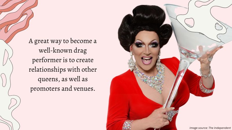 A great way to become a well-known drag performer is to create relationships with other queens, as well as promoters and venues.