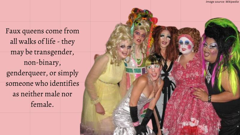 Faux queens come from all walks of life – they may be transgender, non-binary, genderqueer, or simply someone who identifies as neither male nor female.