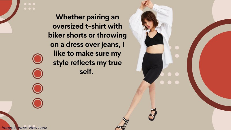Whether pairing an oversized t-shirt with biker shorts or throwing on a dress over jeans, I like to ensure my style reflects my true self.