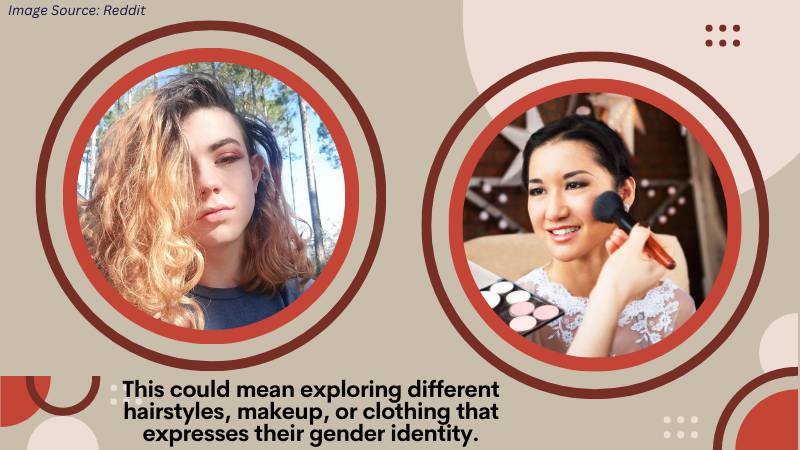 This could mean exploring different hairstyles, makeup, or clothing that expresses their gender identity.