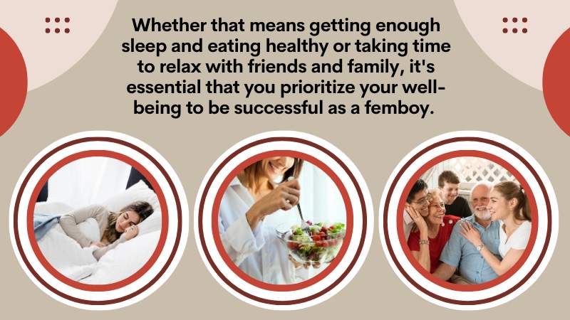 Whether that means getting enough sleep and eating healthy or taking time to relax with friends and family, it’s essential that you prioritize your well-being to be successful as a femboy.