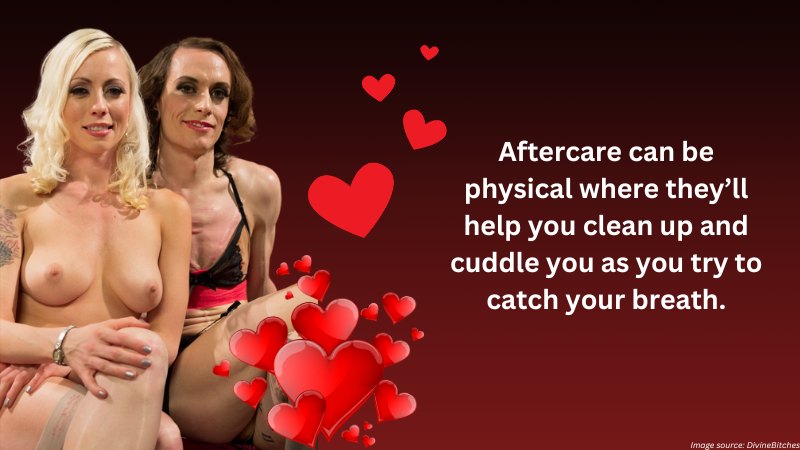 Aftercare can be physical where they’ll help you clean up and cuddle you as you try to catch your breath.