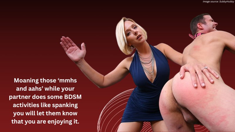 Moaning those ‘mmhs and aahs’ while your partner does some BDSM activities like spanking you will let them know that you are enjoying it.