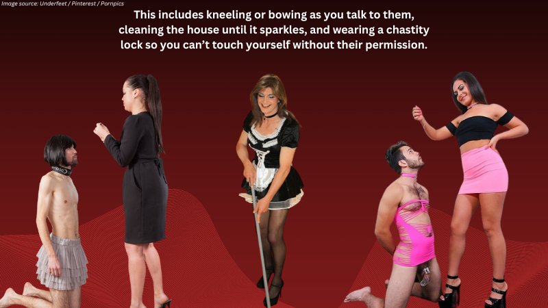 In the BDSM sissy slave and master dynamic, the woman usually takes the dominant role, but the dominant partner can be any gender.