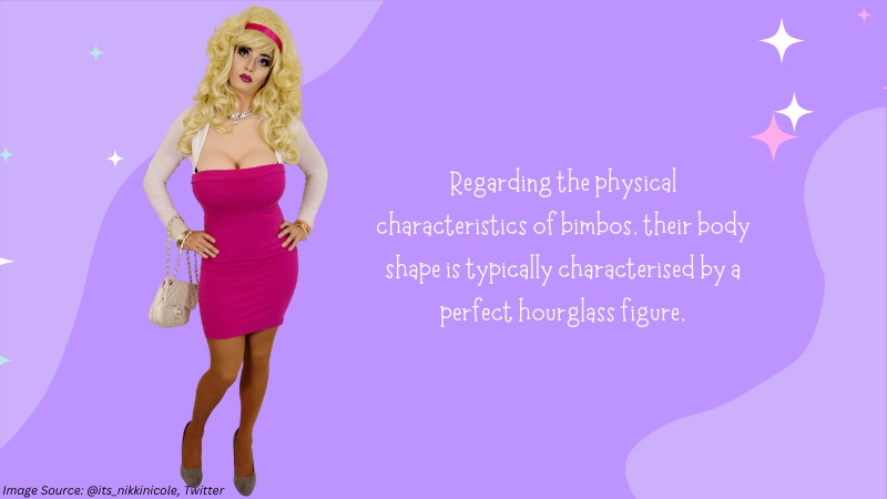 Regarding the physical characteristics of bimbos, their body shape is typically characterised by a perfect hourglass figure, symbolising their love of sensuality and sultriness.