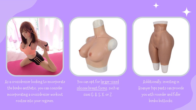 As a crossdresser looking to incorporate the bimbo aesthetic, you can consider incorporating a crossdresser workout routine into your regimen to achieve a well-proportioned, round bimbo body with evenly distributed fat around the hips and bust area.