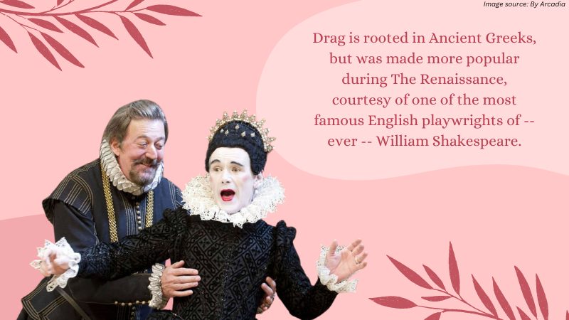 Drag is rooted in Ancient Greeks, but was made more popular during The Renaissance, courtesy of one of the most famous English playwrights of — ever — William Shakespeare. If we’re talking about “someone who entertains,” then plays fall under this category, Shakespeare’s plays are notorious for using male actors to play female characters. This decision was urged by the then-restrictive sexist society. Men are freer to move, and speak, and with “scandalous” scenes in some of the plays, men being overly flirtatious with men in drag on stage was more acceptable back then. Some similar elbowroom was afforded to women dressed in men’s clothing too, to be fair. Female To Male crossdressers were allowed to converse and do vulgar gestures more freely.