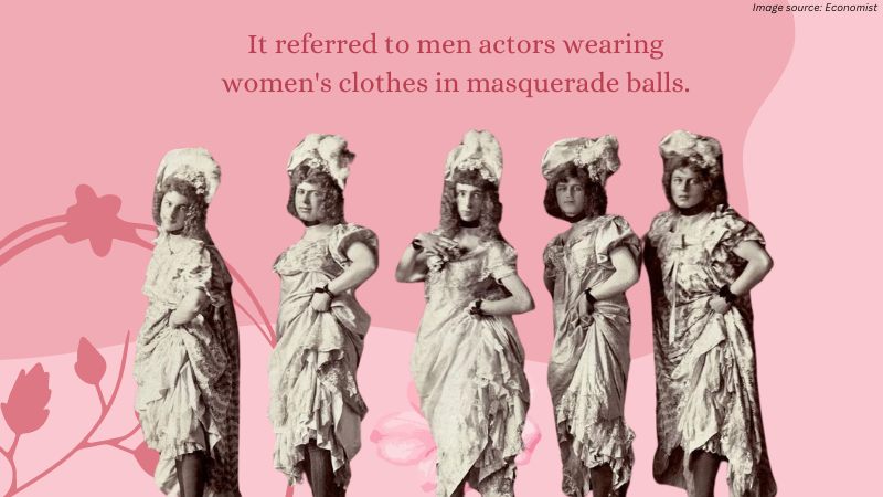 “Drag” was first used during the Victorian era, specifically in 1870. It referred to men actors wearing women’s clothes in masquerade balls. Why drag? Because these men would wear that era’s fashion of long, heavy skirts and drag it around.