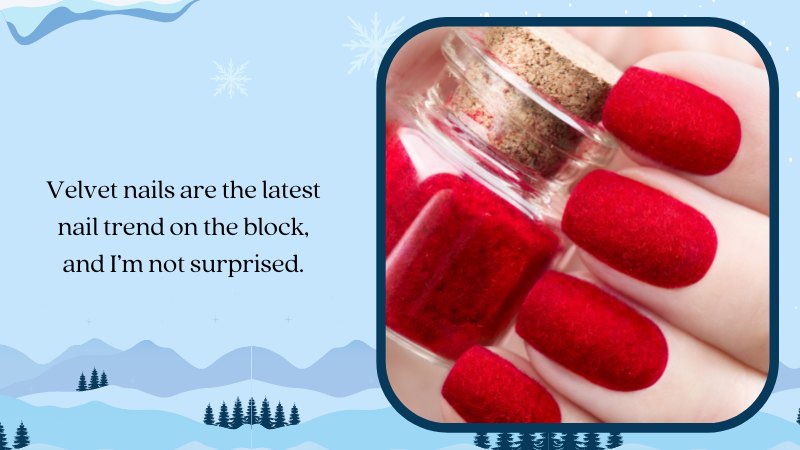 The colder months are not a time to abandon being femme. In fact, this is a great time to get in touch with your inner goddess! And velvet nails are a perfect way to do that! Velvet nails are the latest nail trend on the block, and I’m not surprised. Velvet—like this trend—is soft, smooth, and warm.