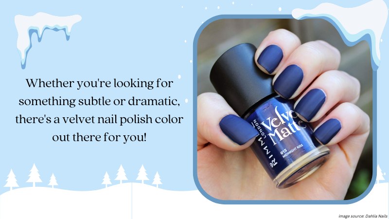 The best thing about velvet nail manicures is that they look like the softest, most luxurious fabric in the world—but they’re on your fingers! Not only do Velvet nails look beautiful, but they also feel amazing! Whether you’re looking for something subtle or dramatic, there’s a velvet nail polish color out there for you! If you want to add a little extra shine to your velvet nails, try applying a clear topcoat over the matte polish to make them look like patent leather. Velvet nails are on trend this season and will help you stay warm while still looking chic.