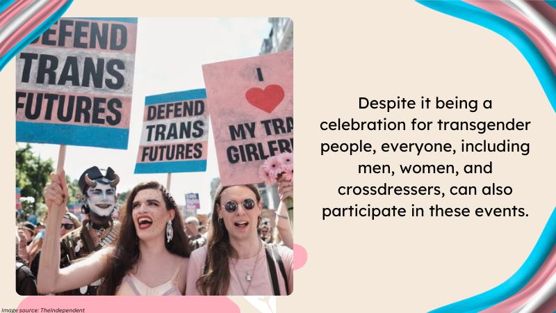 Despite it being a celebration for transgender people, everyone, including men, women, and crossdressers, can also participate in these events.
