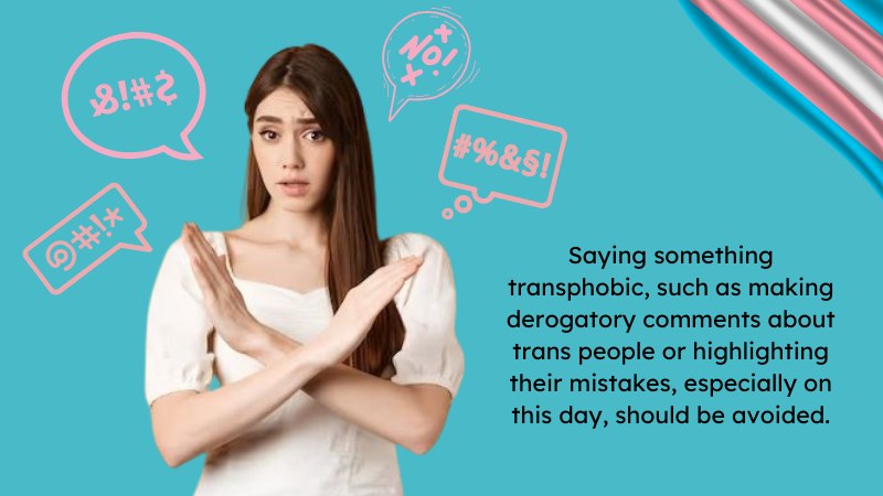 Saying something transphobic, such as making derogatory comments about trans people or highlighting their mistakes, especially on this day, should be avoided.