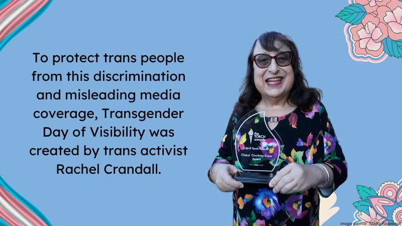 To protect trans people from this discrimination and misleading media coverage, Transgender Day of Visibility was created by trans activist Rachel Crandall.