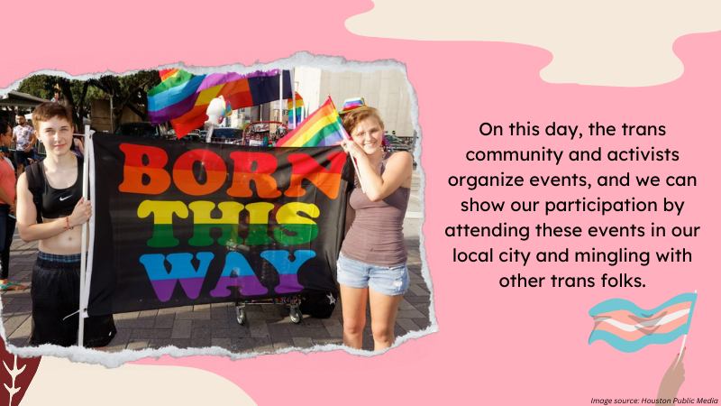 On this day, the trans community and activists organize events, and we can show our participation by attending these events