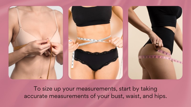 To size up your measurements, start by taking accurate measurements of your bust, waist, and hips.