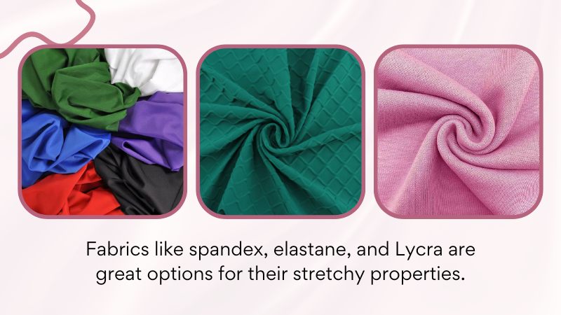 Fabrics like spandex, elastane, and Lycra are great options for their stretchy properties.