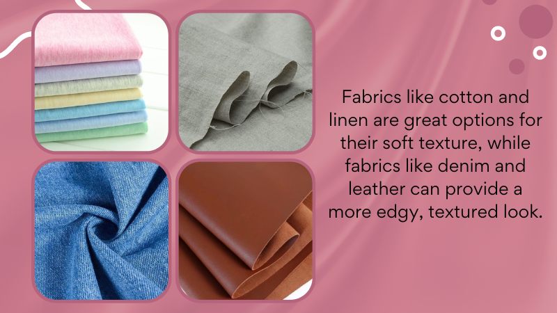 Fabrics like cotton and linen are great options for their soft texture, while fabrics like denim and leather can provide a more edgy, textured look.