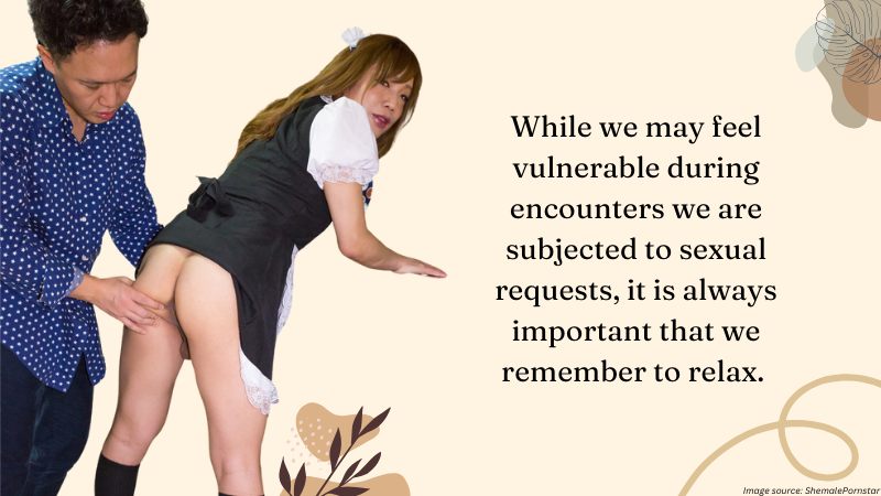 While we may feel vulnerable during encounters when we are subjected to sexual requests, it is always important that we remember to relax.