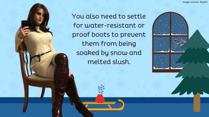 You also need to settle for water-resistant or proof boots to prevent them from being soaked by snow and melted slush.