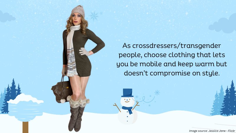 As crossdressers/transgender people, choose clothing that lets you be mobile and keep warm but doesn’t compromise on style.
