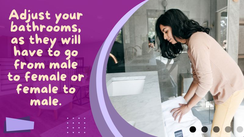 Get at least a few months’ worth of clothes to last you through the transition. You will also have to adjust your bathrooms from male to female or female to male.