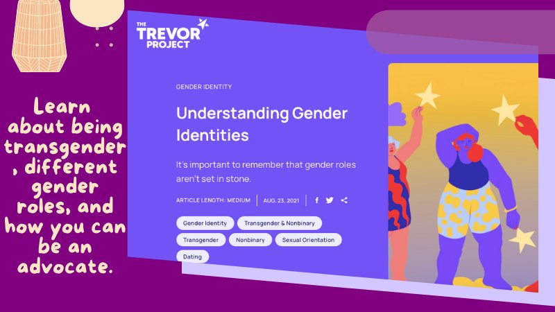 A Guide to Gender Identity. Learn about being transgender, and the different gender roles. You can be an advocate for people who are transgendered in your country and even around the world.