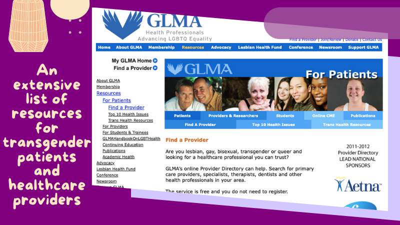 - GLMA: The Gay and Lesbian Medical Association has compiled an extensive list of resources for transgender patients and healthcare providers.