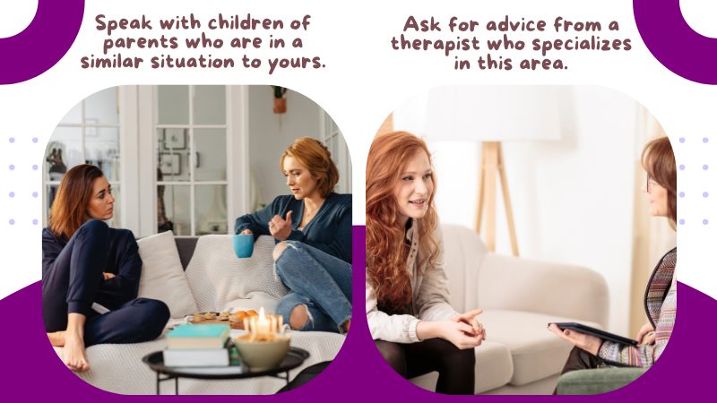 First, you could speak with children of parents who are in a similar situation to yours, and second, you could ask for advice from a therapist who specializes in this area.