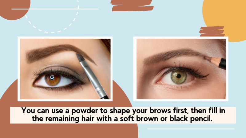 You can use a powder to shape your brows first, then fill in the remaining hair with a soft brown or black pencil.
