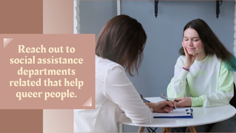 Talk to friends you know would support you, or reach out to social assistance departments related that help queer people.
