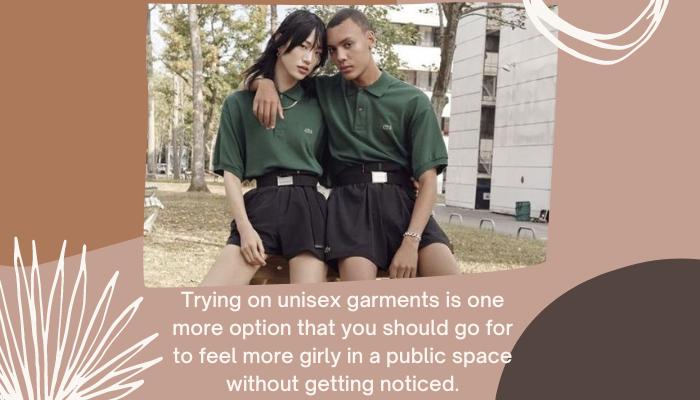 Trying on unisex garments is one more option that you should go for to feel more girly from the inside while still being in male mode from the outside. There are multiple ways to do this, you can pair male and female clothing to have a neutral look. Another way is you can shop for unisex clothes such as skinny jeans, and ladies’ shirts, picking girly colors, etc. Just choose the style you are comfortable with according to your surroundings and how people would perceive it.
