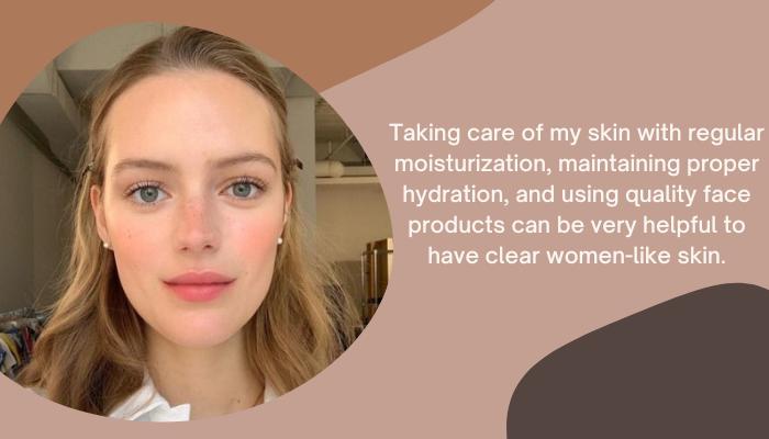 Taking care of skin with regular moisturization, maintaining proper hydration, and using quality face products can be very helpful to have clear women-like skin. I like applying minimal makeup to feel womanly and people around me can’t even notice that.