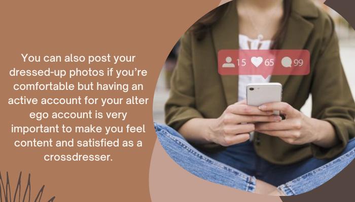 I will recommend this to everyone to have a secret social media presence as a crossdresser. You can also post your dressed-up photos if you’re comfortable. But having an active social media account for your alter ego is very important to make you feel content and satisfied and continue existing men in real life. Not only that you can also connect with fellow crossdressers and transgender, become friends, and share stories and ideas. This can be a very liberating experience for you as a crossdresser.