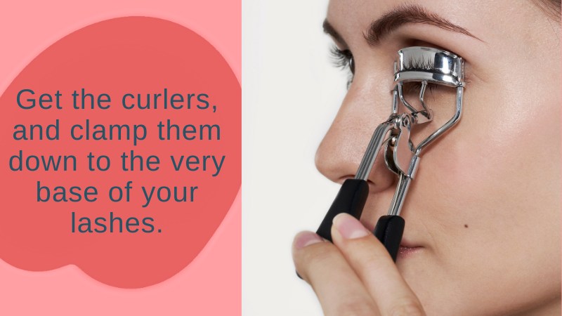 Get the curlers and clamp them down to the very base of your lashes.
