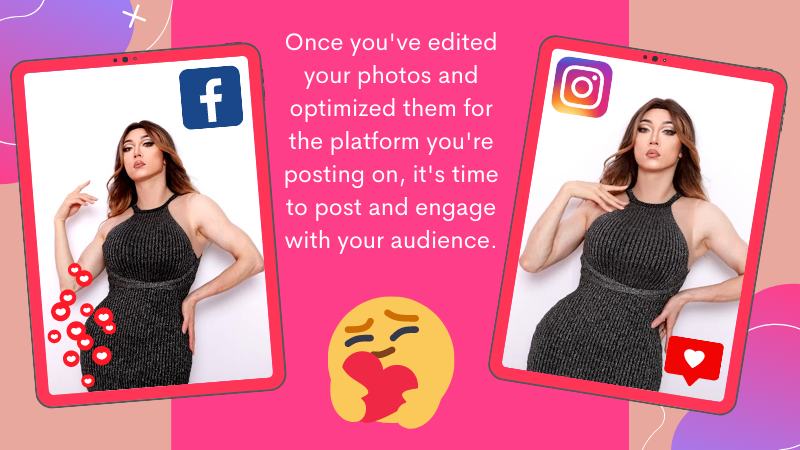 Once you’ve edited your photos and optimized them for the platform you’re posting on, it’s time to post and engage with your audience. Engage with your followers by responding to comments, following other accounts, and participating in community conversations. This will help you connect with others in the community and create a positive and supportive online presence.