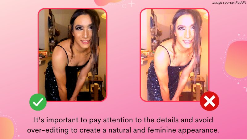 Remember, photo editing is all about creating a more feminine appearance, but it’s important to strike a balance and not go overboard. With these tips, you can achieve a more natural and feminine look in your photos.