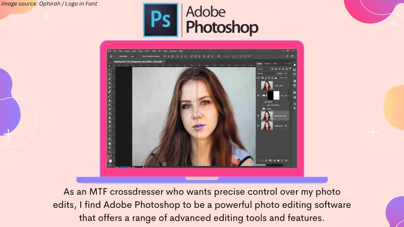 As an MTF crossdresser, I understand that photo editing is essential to my transformation process. Therefore, choosing the right software that fits my needs and budget is important. Here’s a breakdown of some popular photo editing software options and their features: