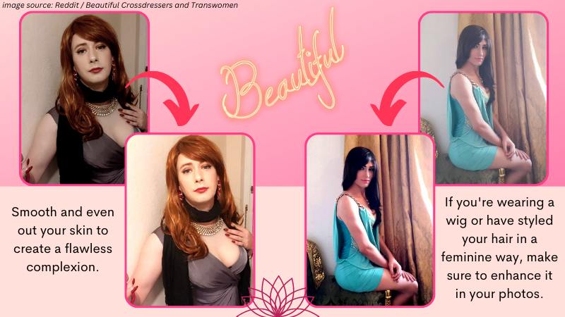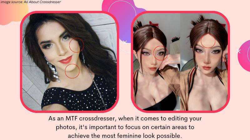 As an MTF crossdresser, when it comes to editing your photos, it’s important to focus on certain areas to achieve the most feminine look possible. Here are some tips on what to focus on while editing your photos: