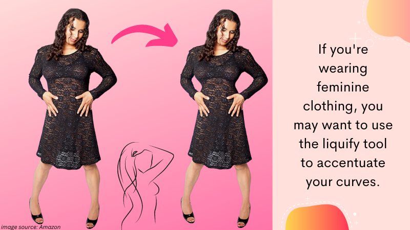 Body: If you’re wearing feminine clothing, you may want to use the liquify tool to accentuate your curves. This can help create a more feminine figure in your photos.