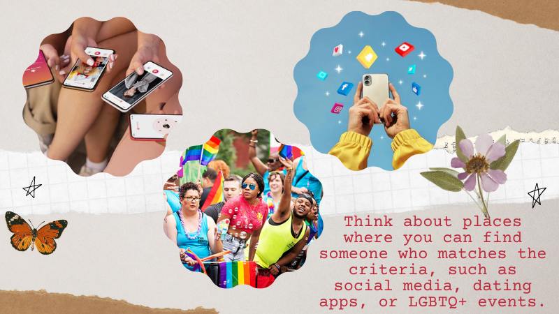 Once you’ve identified what you’re looking for in a partner, it’s time to start looking. Think about places where you can find someone who matches the criteria, such as social media, dating apps, or LGBTQ+ events.