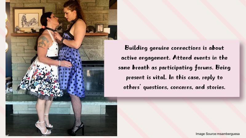 Stories are part of how we build a connection. Sharing your experiences opens a doorway to other crossdressers into your life. Do not fake empathy or crossdressing struggles. If sharing is not your forte, show genuine interest in listening to other crossdressers.