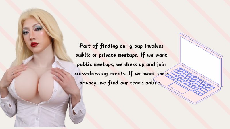 Part of finding our group involves public or private meetups. If we want public meetups, we dress up and join cross-dressing events. If we want some privacy, we find our teams online.