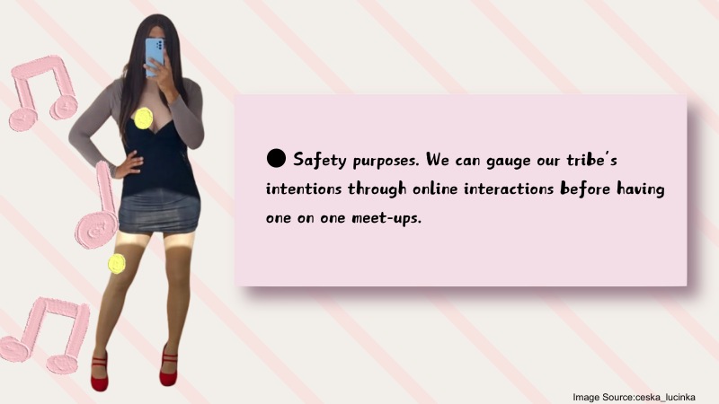 - Safety purposes. We can gauge our tribe’s intentions through online interactions before having one-on-one meet-ups.