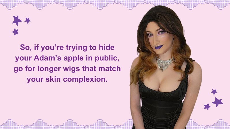 So if you’re trying to hide your Adam’s apple in public, go for longer wigs that match your skin complexion.