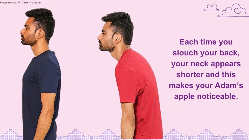 Each time you slouch your back, your neck appears shorter and this makes your Adam’s apple noticeable.